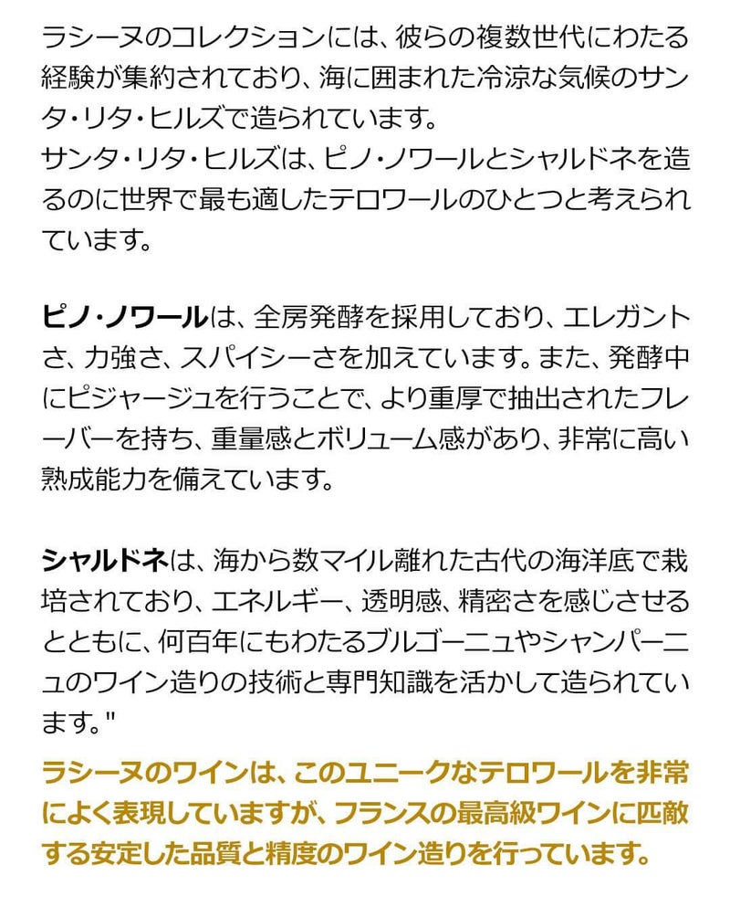 他の画像を見る ブルゴーニュのモンティーユとシャンパーニュのペテルスによるジョイントワイン サンタリタ ヒルズ シャルドネ 2017ラシーヌ 750mlワイン 白 ギフト プレゼント アメリカ カリフォルニア サンタバーバラ 辛口 白ワイン 浜運 ワインよりどり3本以上5%OFF ワインよりどり6本以上10%OFF ¥ 8,800 税込 お気に入りに登録する 在庫切れ