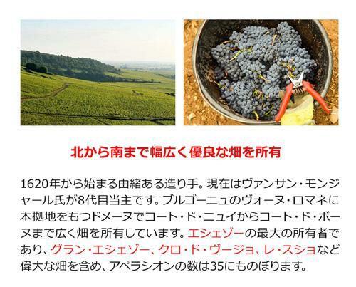 他の画像を見る DRCに次ぐ所有量を持つ特級畑から造られる逸品! グラン エシェゾー2020モンジャール ミュニュレ 750ml正規品 特級 グランクリュ フランス ブルゴーニュ コート ド ニュイ 赤ワイン ピノ ノワール 辛口 中重口 虎 少量入荷ブルゴーニュ ワインよりどり3本以上5%OFF ワインよりどり6本以上10%OFF ¥ 71,500 税込 お気に入りに登録する 在庫切れ