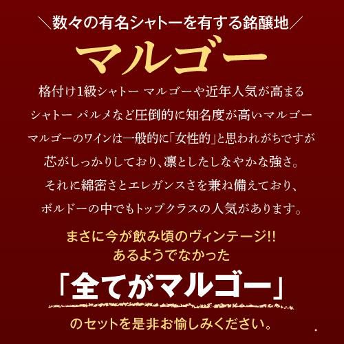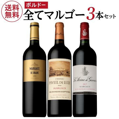 他の画像を見る 1本あたり5,000円(税込) 送料無料全てがマルゴー 赤ワイン 3本セットファインズ 750ml×3本格付け 3級 4級 セカンドワイン入り ワインセット送料無料 敬老の日 手土産 お祝い ギフト 浜運A ワインよりどり3本以上5%OFF ワインよりどり6本以上10%OFF ¥ 19,800 ¥ 15,000 税込 お気に入りに登録する 在庫切れ
