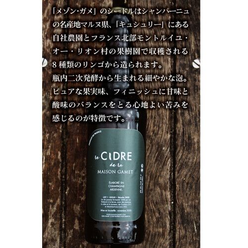 他の画像を見る 8種のリンゴを使用!シャンパーニュメゾンのシードル シードル デュ ラ メゾン ガメ2020 330mlフランス ルシャンパーニュ スイート 林檎 甘口 長S ワインよりどり3本以上5%OFF ワインよりどり6本以上10%OFF ¥ 1,320 税込 お気に入りに登録する