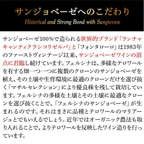 他の画像を見る フェルシナの哲学が詰まった純正キャンティ クラシコ ベラルデンガ キャンティ クラシコ 2022 フェルシナ 750ml イタリア トスカーナ サンジョベーゼ D.O.C.G. 赤ワイン 浜運A ワインよりどり3本以上5%OFF ワインよりどり6本以上10%OFF ¥ 4,180 税込 お気に入りに登録する