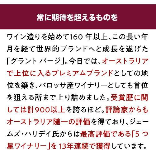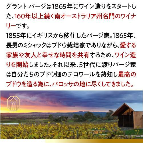 他の画像を見る 1865年の創立者を称えて造られたハイスタンダードなシリーズ ベンチマーク シャルドネ 2023グラント バージ 750mlオーストラリア バロッサヴァレー SA州 南オーストラリア州 白 辛口 浜運 ワインよりどり3本以上5%OFF ワインよりどり6本以上10%OFF ¥ 1,848 税込 お気に入りに登録する