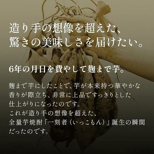 他の画像を見る 芋と芋麹だけで造る芋100%の焼酎! 焼酎 芋焼酎 一刻者 全量芋焼酎 25度 720ml 京都府 宝酒造いも焼酎 芋麹 石蔵貯蔵 4合瓶 母の日 父の日 ¥ 1,683 税込 お気に入りに登録する