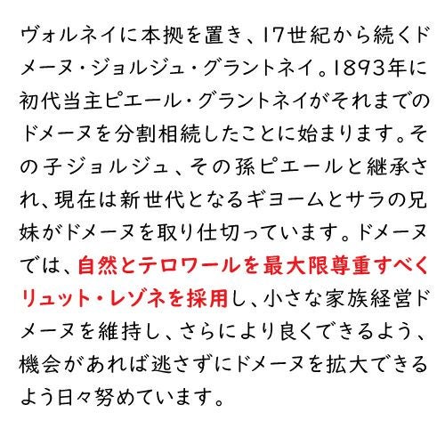 他の画像を見る ヴォルネイ レ サントノ プルミエ クリュ [2021] ジョルジュ グラントネイ 750ml フランス ブルゴーニュ コート ド ボーヌ 赤ワイン 浜運 ワインよりどり3本以上5%OFF ワインよりどり6本以上10%OFF ¥ 9,680 税込 お気に入りに登録する 在庫切れ