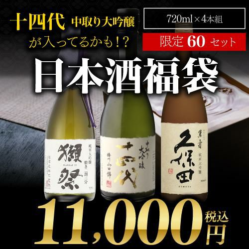 他の画像を見る ご好評につき第29弾! 第29弾 日本酒福袋 720ml×4本セット 限定120セット 十四代 が入ってるかも? 獺祭 久保田 くじ 虎S ¥ 11,000 税込 お気に入りに登録する 在庫切れ 販売期間 2026/01/09 20:00 〜 2026/03/31 23:59