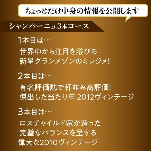 他の画像を見る 3本合計で79,200円(税込)相当のワイン入り! 送料無料 中身が見える シャンパーニュ3本 33,333円(税別)福袋ワイン福袋 シャンパン 浜運 年末年始 クリスマス お歳暮 御歳暮 ¥ 36,666 税込 お気に入りに登録する 販売を終了しました。