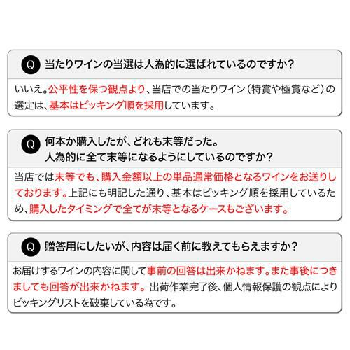 他の画像を見る 中身は届いてからのお楽しみ♪ミステリーワインくじ! 【ポイント3倍】【送料別】何が当たるかお楽しみ! ミステリーワインくじ【先着77セット限定】赤ワイン 白ワイン スパークリングワイン シャンパン シャンパーニュWくじ 福袋 虎 ¥ 1,111 税込 お気に入りに登録する 在庫切れ 販売を終了しました。