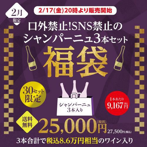 他の画像を見る 《 2/17(金) 20時より販売スタート 》【送料無料】 30セット限定口外禁止!SNS禁止の銘醸ワイン 3本 福袋 3本合計で8.6万円(税込)相当のシャンパーニュ入り!ワイン福袋 ワインセット シャンパン 浜運 ¥ 27,500 税込 お気に入りに登録する 在庫切れ 販売を終了しました。