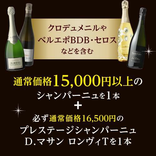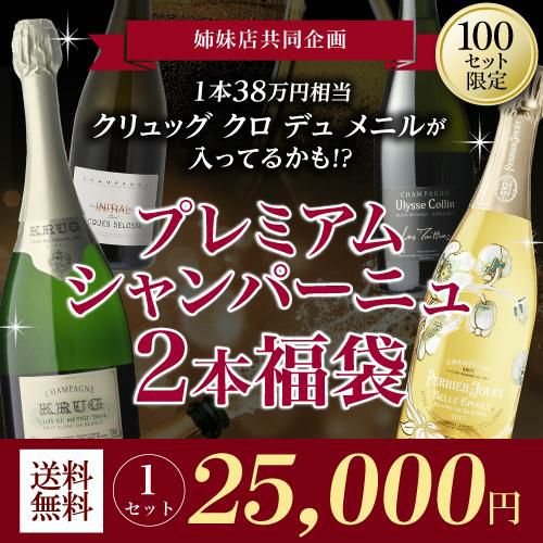 他の画像を見る 【送料無料】1本38万相当のクロデュメニルが入ってるかもプレミアム シャンパン 2本 福袋 2.5万 シャンパンセット 2本入100セット中40セットは1本2.5万以上のシャンパン【限定 100セット】リカーマウンテン 福袋 Wくじ ¥ 25,000 税込 お気に入りに登録する 在庫切れ 販売を終了しました。