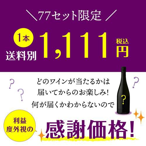 他の画像を見る 中身は届いてからのお楽しみ♪ミステリーワインくじ! 【ポイント3倍】【送料別】何が当たるかお楽しみ! ミステリーワインくじ【先着77セット限定】赤ワイン 白ワイン スパークリングワイン シャンパン シャンパーニュWくじ 福袋 虎 ¥ 1,111 税込 お気に入りに登録する 在庫切れ 販売を終了しました。