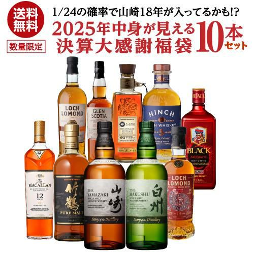 他の画像を見る 1/10が山崎18年、響21年など特賞以上!ウイスキー福袋 1本組 限定500セット 長S ※必ずあたるキャンペーン対象外 ¥ 7,700 税込 お気に入りに登録する 在庫切れ 販売期間 2025/10/10 20:00 〜
