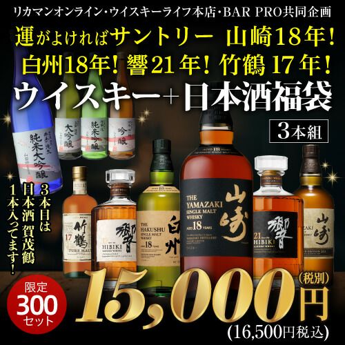 他の画像を見る (予約)2022/7/21 18時販売開始運がよければ 白州18年 山崎18年 響21年 が当たるかも!? 夏季限定企画 ウイスキー福袋 ウイスキー2本+日本酒1本 3本組 限定300セット RSL2022/7/28以降発送予定 ¥ 16,500 税込 お気に入りに登録する 在庫切れ 販売期間 2022/07/21 18:00 〜