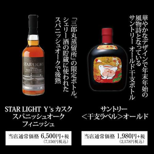 他の画像を見る 運が良ければ山崎18年 白州18年 響21年が入っているかも!? 必ずジャパニーズorジャパンメイドが入ったウイスキー福袋2本組! 限定200セット 2025/11/10発売 虎S ¥ 16,500 税込 お気に入りに登録する 在庫切れ 販売期間 2025/11/10 20:00 〜