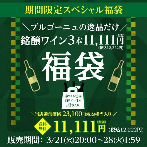他の画像を見る 3本合計で23,100円(税込)相当のワイン入り! (ポイント3倍)送料無料ブルゴーニュワイン3本入り 11,111円(税別)福袋 赤ワイン2本 白ワイン 1本入り おひとり様1セット限定 ワイン福袋 浜運 ¥ 12,222 税込 お気に入りに登録する 在庫切れ 販売を終了しました。