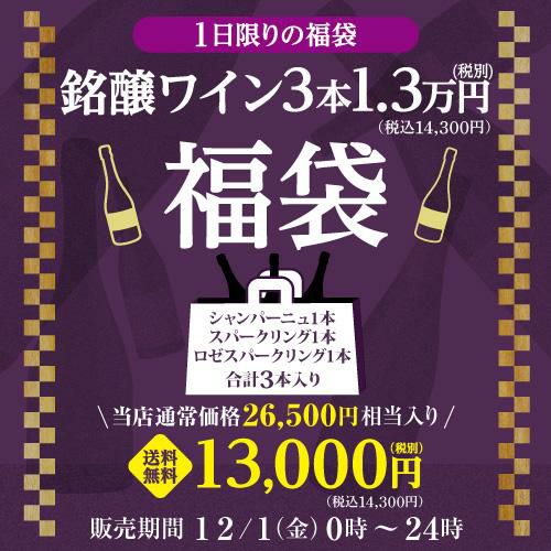 他の画像を見る 3本合計で38,000円(税込)相当のワイン入! 20セット再販決定!送料無料年末年始福袋第2弾 「世界一」獲得メゾン福袋 前回購入できなかった方へシャンパーニュ3本入 1.5万円(税別)福袋 長S ¥ 16,500 税込 お気に入りに登録する 在庫切れ 販売を終了しました。