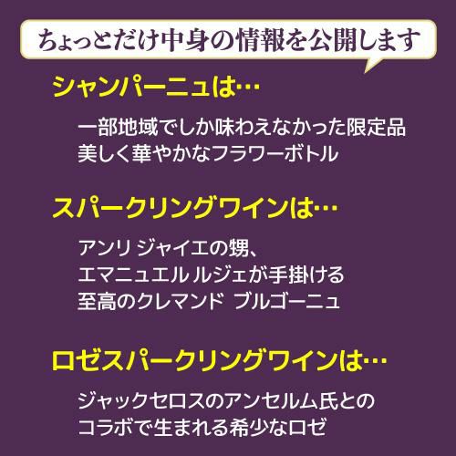他の画像を見る シャンパーニュデー限定 シャンパン3本入 1.5万円(税別)福袋 送料無料43,400円(税込)相当が入って16,500円(税込)!シャンパーニュデー シャンパーニュ3本福袋必ず2006ヴィンテージシャンパーニュ入り!ワインセット シャンパン 浜運 ¥ 16,500 税込 お気に入りに登録する 在庫切れ 販売を終了しました。