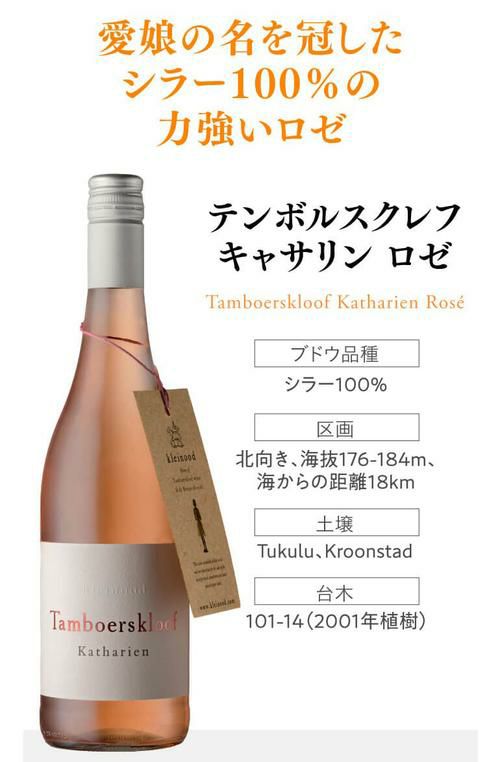他の画像を見る アンティノリ元醸造長がコンサルを務めた!シラー100%ロゼ テンボルスクレフ キャサリン ロゼ ステレンボッシュ 2024クレイノード 750ml南アフリカ 辛口 アンティノリ 元醸造長 コンサル シラー ロゼワイン 浜運 ワインよりどり3本以上5%OFF ワインよりどり6本以上10%OFF ¥ 3,850 税込 お気に入りに登録する