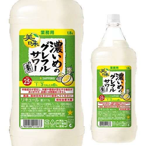 他の画像を見る グレープフルーツのジューシーな甘酸っぱさと、ほのかな苦味が特長 サッポロ 濃いめのグレフルサワーの素 25度 1800ml グレープフルーツ果汁 ウォッカ 長Sチューハイ カクテル サワー 炭酸 ソーダ割 ¥ 1,815 税込 お気に入りに登録する