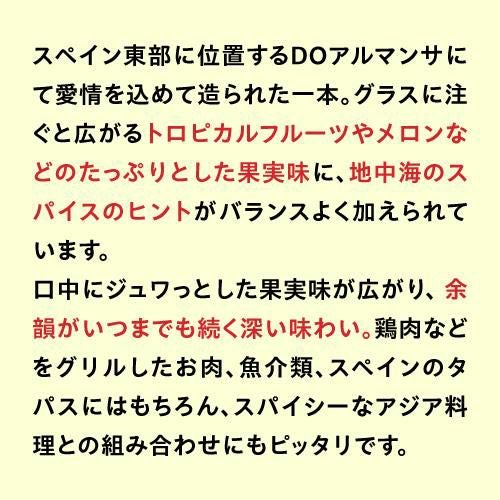 他の画像を見る 地中海を感じる芳醇なシャルドネ シャルドネ アルマンサスパニッシュストーリー750mlスペイン シャルドネ EUリーフ 金賞 ゴールド 白 辛口 浜運 ワインよりどり3本以上5%OFF ワインよりどり6本以上10%OFF ¥ 1,980 税込 お気に入りに登録する