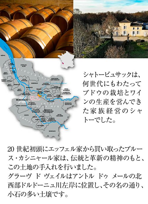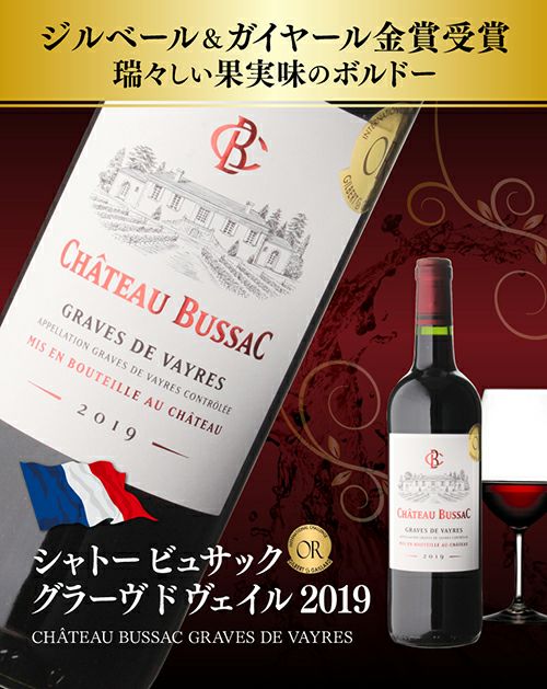 他の画像を見る ジルベール&ガイヤール金賞受賞! シャトー ビュサック グラーヴ ド ヴェイル 2019 750mlフランス 辛口 ボルドー 金賞 メルロー カベルネソーヴィニヨン 赤ワイン 浜運 ワインよりどり3本以上5%OFF ワインよりどり6本以上10%OFF ¥ 1,650 税込 お気に入りに登録する 在庫切れ