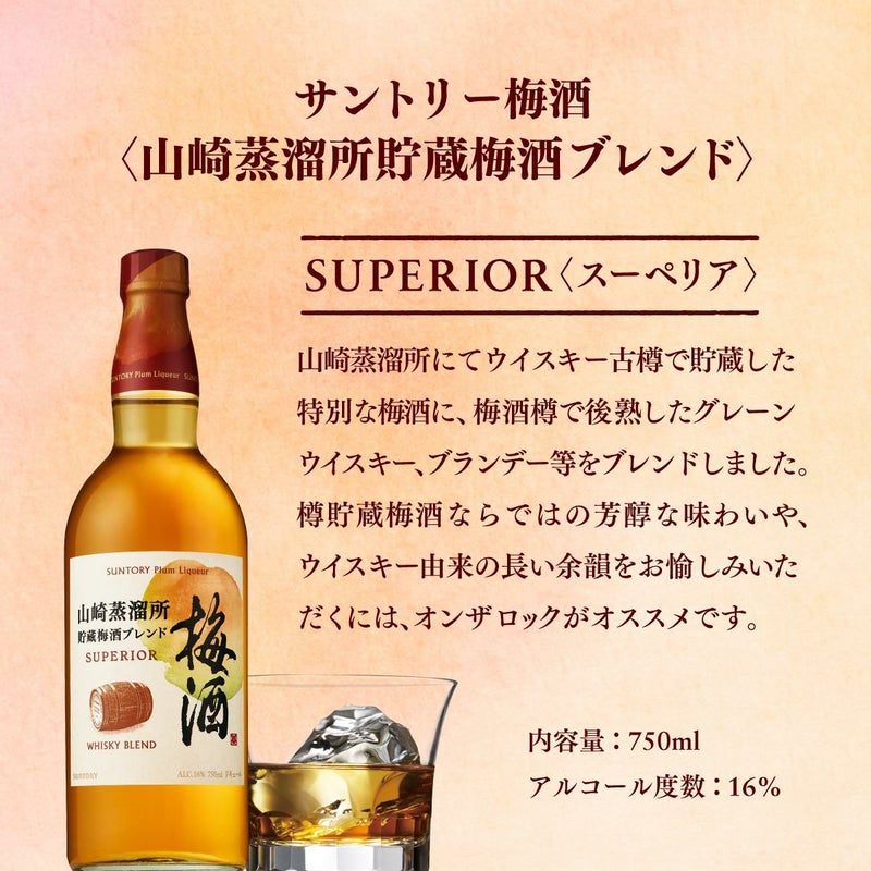 他の画像を見る 深さの秘密は、ウイスキー原酒。上質な余韻の贅沢な梅酒。 サントリー 梅酒 山崎蒸溜所貯蔵梅酒ブレンド スーペリア 16度 750ml 梅酒 瓶SUNTORY 梅酒 ウイスキー 長S ¥ 2,750 税込 お気に入りに登録する