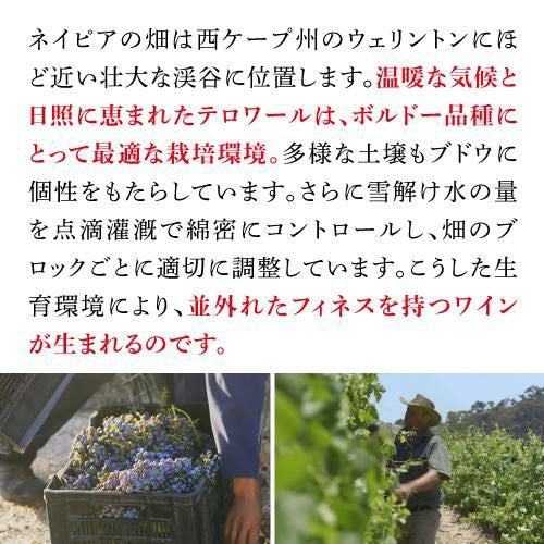 他の画像を見る ホウクワ山麓に広がる単一畑のブドウを使用 シングル ヴィンヤード カベルネ ソーヴィニヨン 2019 ネイピア750ml南アフリカ ウェリントン 西ケープ 赤ワイン 辛口 浜運 ワインよりどり3本以上5%OFF ワインよりどり6本以上10%OFF ¥ 4,290 税込 お気に入りに登録する