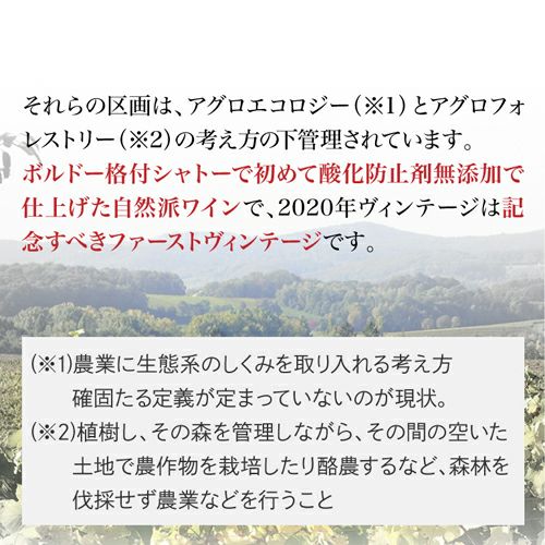 他の画像を見る テロワールのニュアンスをすべて純粋にフィネスで表現 クール便指定 セレス ド オー バージュ リベラル 2020 750mlフランス ボルドー 辛口 赤 ワイン 赤ワイン 酸化防止剤無添加 オーガニック 浜運 ワインよりどり3本以上5%OFF ワインよりどり6本以上10%OFF ¥ 3,850 税込 お気に入りに登録する 在庫切れ