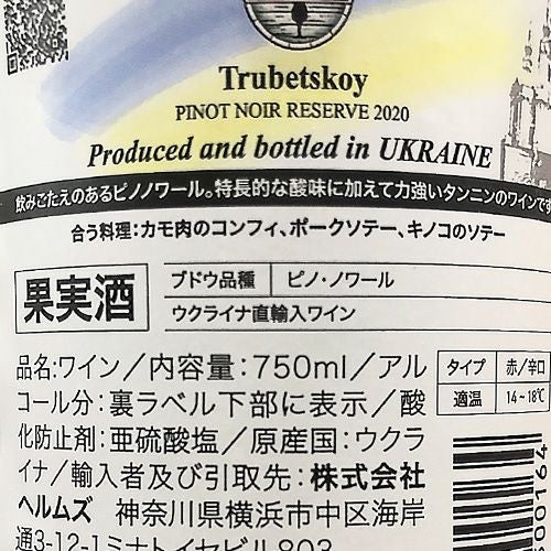 他の画像を見る ウクライナで最も歴史あるシャトー ピノ ノワール レゼルヴ 2020ツルベツコイ 750mlウクライナ ヘルソン ウクライナワイン 辛口 赤ワイン 虎 ワインよりどり3本以上5%OFF ワインよりどり6本以上10%OFF ¥ 3,630 税込 お気に入りに登録する 在庫切れ