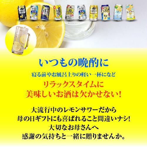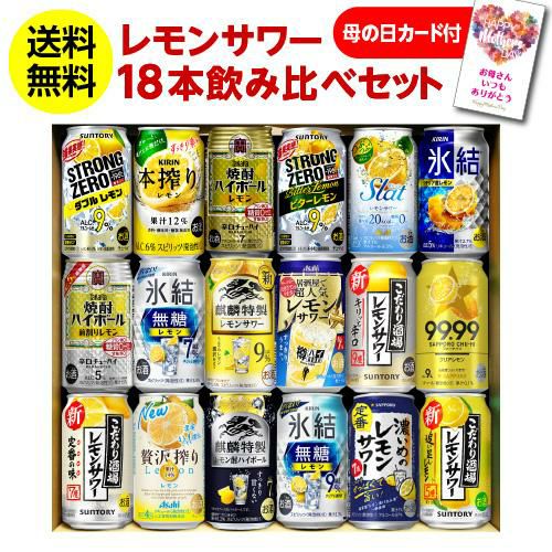 他の画像を見る レモンサワーの宝石箱や~!大人気レモンサワー缶を母の日ギフトに♪ 母の日カード付 母の日 プレゼント ギフト レモンサワー 18本 送料無料 チューハイセット 飲み比べ 詰め合わせ 350ml 花以外 ストロングゼロ -196℃ レモン 氷結 焼酎ハイボール チューハイ RTD RSL ¥ 3,998 税込 お気に入りに登録する 在庫切れ