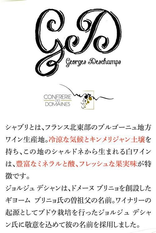 他の画像を見る オーガニックシャブリ シャブリ 2022 ドメーヌ ジョルジュ デシャン 750ml フランス ブルゴーニュ シャルドネ ビオ オーガニック 白ワイン 浜運お中元母の日 父の日 ワインよりどり3本以上5%OFF ワインよりどり6本以上10%OFF ¥ 3,520 税込 お気に入りに登録する 在庫切れ