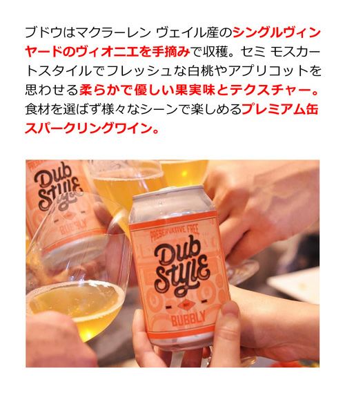 他の画像を見る 世界初!酸化防止剤無添加の缶入りスパークリングワイン 【クリアランス 20%OFF】1本当たり1,980 円(税込) 送料無料 ダブスタイル プリザーバティヴ フリーバブリー 2017 インクウェル 330ml 3本入オーストラリア 辛口 ヴィオニエ 飲みきりサイズ 缶ワイン スパークリングワイン ワインセット 長S 定価 ¥ 5,940 のところ 当店特別価格 ¥ 4,323 税込 お気に入りに登録する 在庫切れ