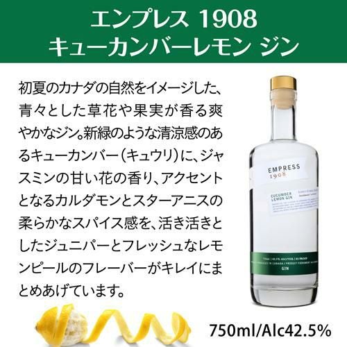他の画像を見る 新緑のような清涼感がたっぷりと味わえるジン エンプレス 1908 キューカンバーレモン ジン 750ml 42.5度 正規品ハンドクラフト ボタニカル9種 カクテル ソーダ割り EMPRESS CUCUMBER LEMON GIN ¥ 4,180 税込 お気に入りに登録する