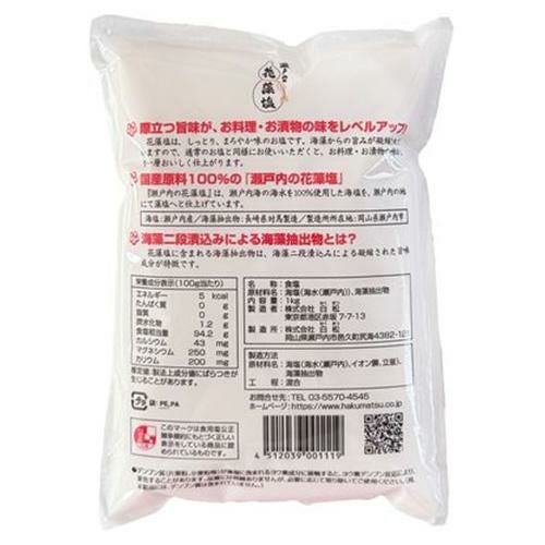 他の画像を見る 瀬戸内の花藻塩 花藻塩 はなもしお 白松 塩 お塩 食塩 粗塩 あらじお 漬物 浅漬け おにぎり 国産塩 国産原料 瀬戸内海 【ケース買いがお得】白松 瀬戸内の花藻塩 1kg 10袋 ケース販売 平袋 海藻エキス しっとり まろやか 賞味期限なし RSL ¥ 3,700 税込 お気に入りに登録する