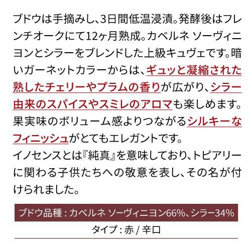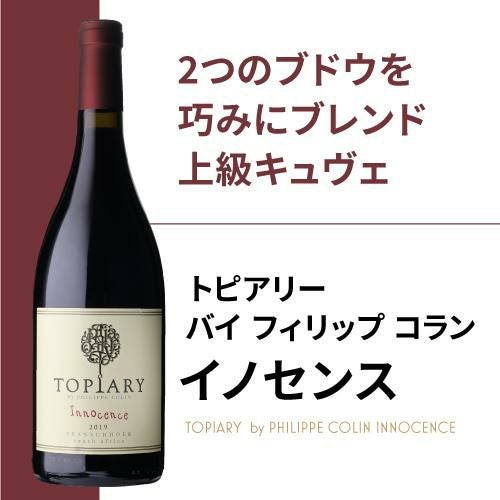 他の画像を見る ブルゴーニュの著名生産者フィリップ・コランが手掛ける赤 トピアリー バイ フィリップ コラン イノセンス 2019トピアリー750ml南アフリカ 西ケープ カベルネソーヴィニヨン シラー 赤ワイン 辛口 浜運 ワインよりどり3本以上5%OFF ワインよりどり6本以上10%OFF ¥ 3,960 税込 お気に入りに登録する
