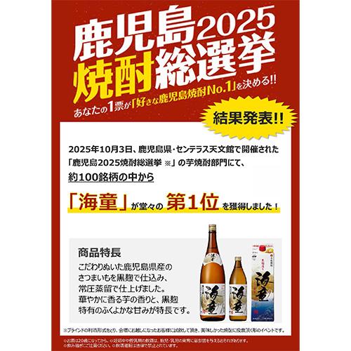 他の画像を見る 送料無料!昔ながらの黒麹で仕込んだ、コクがあるまろやかなな味わい 《パック》海童 黒麹造り芋焼酎 25度 1.8Lパック×6本鹿児島県 濱田酒造6本販売 送料無料1800ml KOB ¥ 10,890 税込 お気に入りに登録する