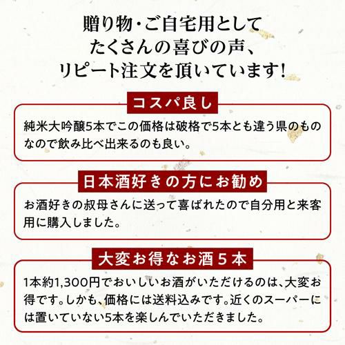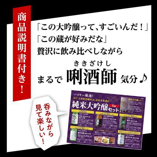 他の画像を見る すべて国産米使用!清酒バイヤーが惚れた酒だけを集めました 純米大吟醸 送料無料 飲み比べ セット 辛口 720ml 5本 全て全国新酒鑑評会“金賞”受賞蔵!日本酒 清酒 酒 誕生日 ギフト プレゼント 贈答 贈り物 純米大吟醸酒 長S ¥ 6,980 税込 お気に入りに登録する