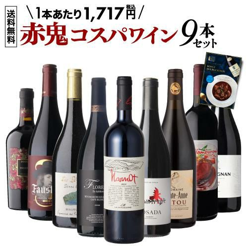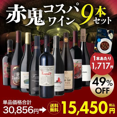他の画像を見る 単品合計価格30,856円(税込)→セット特別価格15,450円(税込) 目玉はルカマローニ93点獲得実績のバルベーラ!1本あたり1,717円(税込) 送料無料赤鬼コスパワイン9本 おまけ付 54弾ワインセット 赤ワイン 飲み比べ 赤 イタリア フランス セット 浜運 ¥ 15,450 税込 お気に入りに登録する