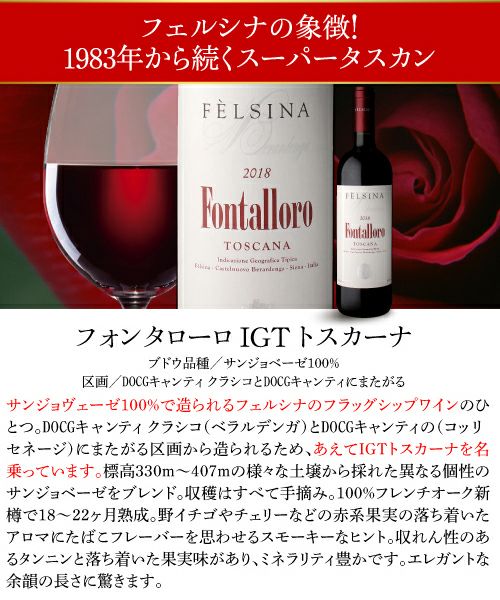 他の画像を見る フェルシナの象徴!1983年から続くスーパータスカン フォンタローロ 2018 IGT トスカーナ フェルシナ 750ml イタリア トスカーナ スーパータスカン サンジョベーゼ 辛口 赤ワイン 浜運 ワインよりどり3本以上5%OFF ワインよりどり6本以上10%OFF ¥ 11,000 税込 お気に入りに登録する