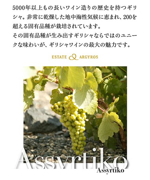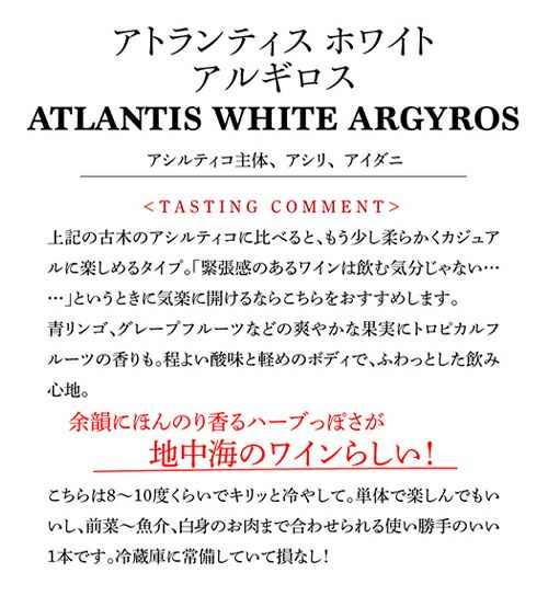 他の画像を見る 試す価値あり!ギリシャの爽やかな白 アトランティス ホワイト [2022] エステート アルギロス 750ml ギリシャ アシルティコ アシリ アイダニ 白ワイン 浜運 ワインよりどり3本以上5%OFF ワインよりどり6本以上10%OFF ¥ 2,970 税込 お気に入りに登録する