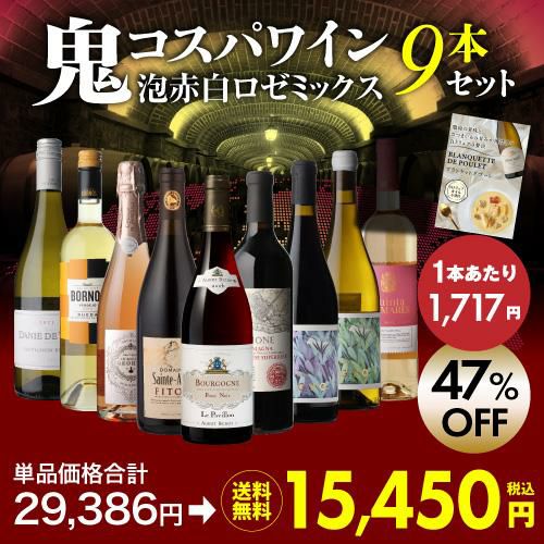 他の画像を見る 単品合計価格29,386円(税込)→セット特別価格15,450円(税込) 目玉はブルゴーニュの名門!1本あたり1,717円(税込) 送料無料 鬼コスパワイン9本 おまけ付 66弾ミックス 赤 白 ロゼ スパークリング 辛口 ワイン ワインセット 飲み比べ 浜運 ¥ 15,450 税込 お気に入りに登録する