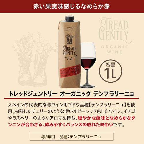 他の画像を見る 果実味感じるオーガニック赤ワイン 1本当たり980 円(税込) 送料無料 トレッド ジェントリー オーガニックテンプラニーリョ 1L 6本セット 1000ml 6本入スペイン ケース 長S ¥ 5,880 税込 お気に入りに登録する