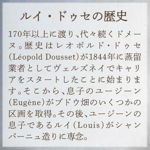 他の画像を見る 果実味と酸のバランスが秀逸 ルイ ドゥセオリジナル ブリュット ナチュール 750mlヴェルズネイ モンターニュ ド ランス シャンパン 辛口 シャンパーニュ 浜運 ワインよりどり3本以上5%OFF ワインよりどり6本以上10%OFF ¥ 9,900 税込 お気に入りに登録する