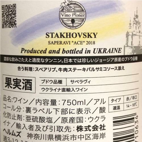 他の画像を見る オーナーはウクライナ最高のテニスプレーヤー サぺラヴィ エース 2018スタホフスキー 750mlウクライナ カルパチア ウクライナワイン 辛口 赤ワイン 浜運 ワインよりどり3本以上5%OFF ワインよりどり6本以上10%OFF ¥ 4,983 税込 お気に入りに登録する