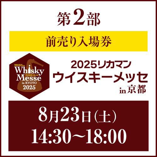 他の画像を見る 世界のウイスキーが京都に集結!関西最大級のウイスキーの試飲会! 【前売り入場券】8月23日(土) 1+2部 通し券 前売入場券 2025 リカマンウイスキーメッセ in京都 1枚入場券となるeチケットは【8月下旬】にメールにて配信予定 ¥ 8,000 税込 お気に入りに登録する 在庫切れ 販売を終了しました。
