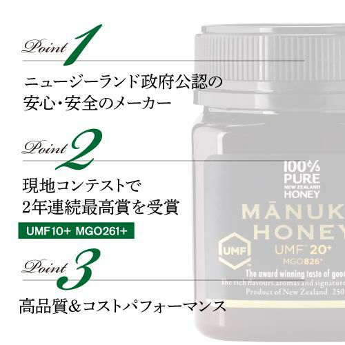 他の画像を見る UMF20+グレードの生マヌカハニーです マヌカハニー UMF20+ MGO826+ 250g×3個 生マヌカ プレミアムハニー UMF20 MGO ギフト MANUKA HONEY はちみつ 蜂蜜 ハチミツ 非加熱 無農薬 虎S ¥ 25,500 税込 お気に入りに登録する